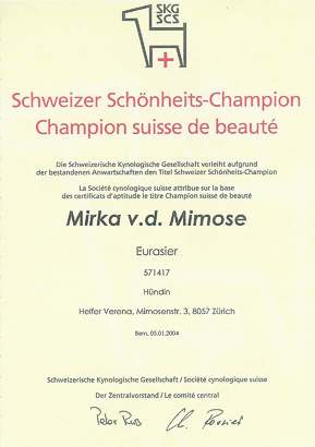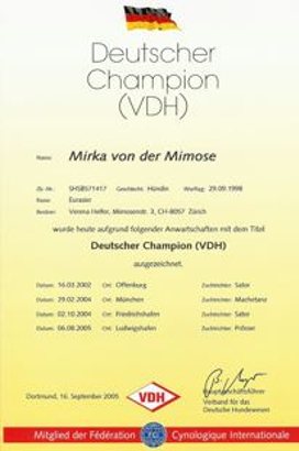 Champion, wo sie zwei Anwartschaften vom gleichen Richter erhielt. Mirka vom